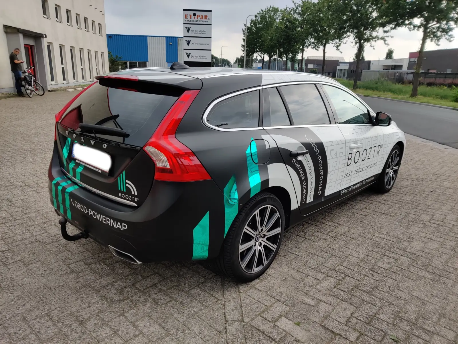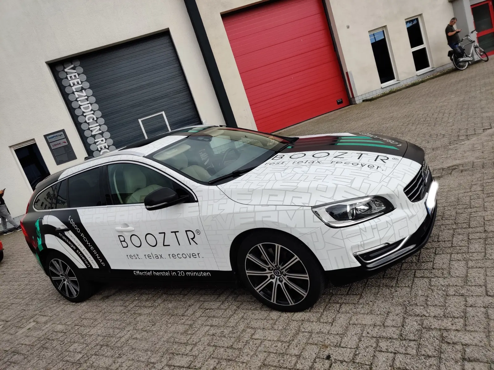 De auto van BOOZTR heeft een gloednieuwe look dankzij de opvallende belettering die niet alleen de aandacht trekt, maar ook het merk versterkt.
