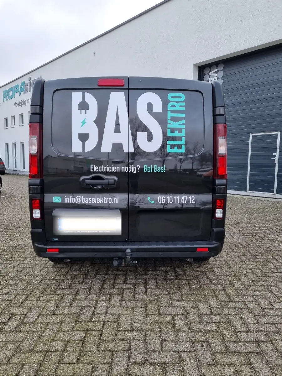 De bedrijfsbus van BAS Elektro heeft een gloednieuwe look dankzij de opvallende belettering die niet alleen de aandacht trekt, maar ook het merk versterkt.