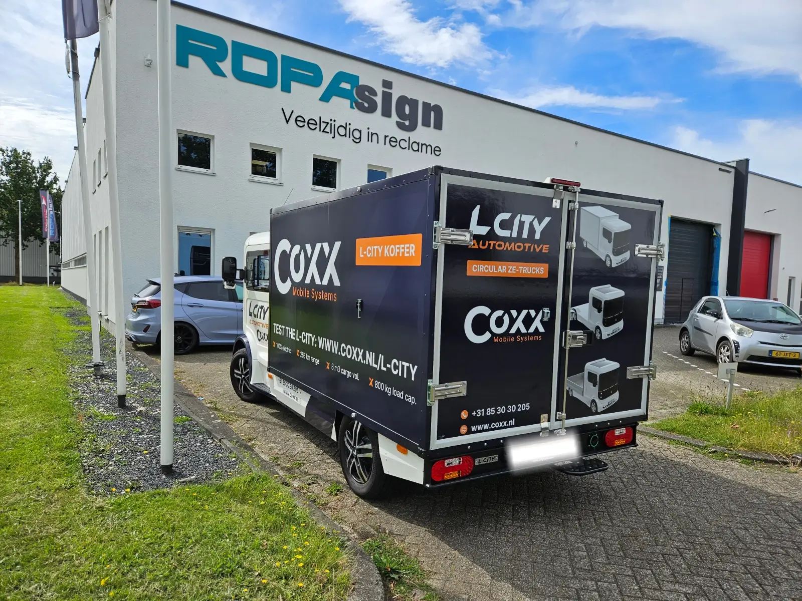 De bedrijfswagen van Coxx Mobile Systems heeft een gloednieuwe look dankzij de opvallende belettering die niet alleen de aandacht trekt, maar ook het merk versterkt.