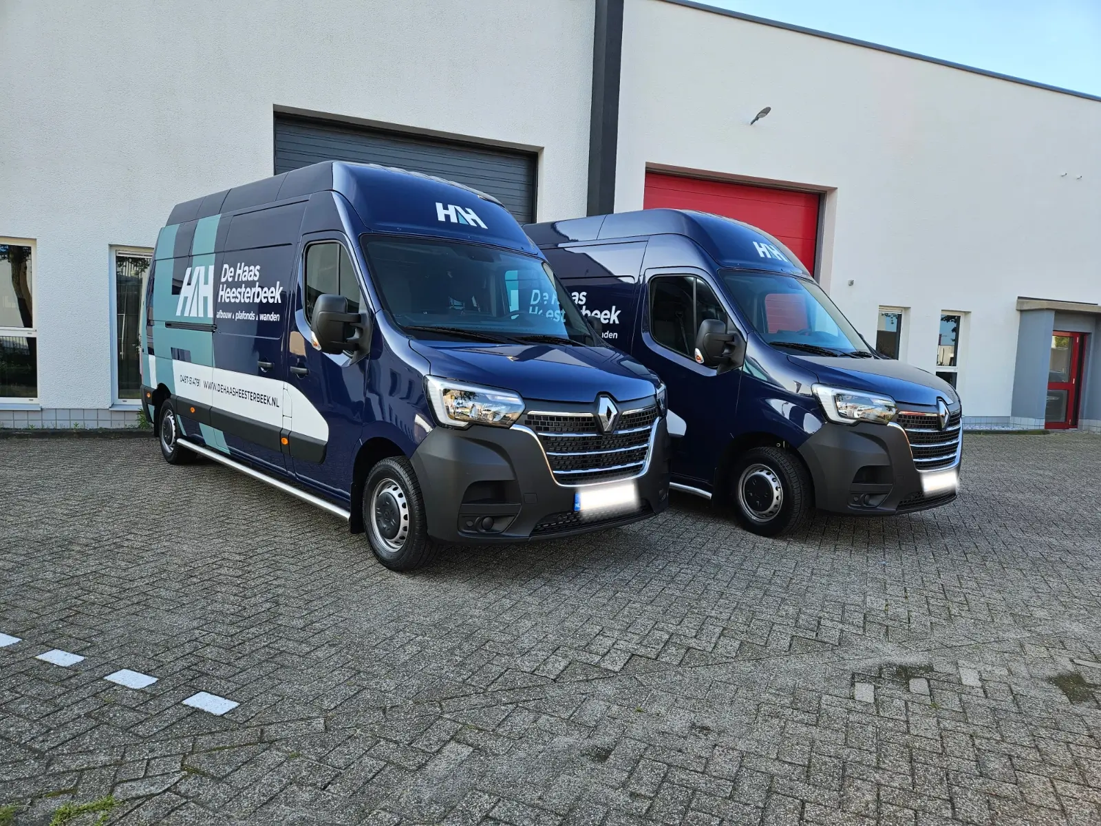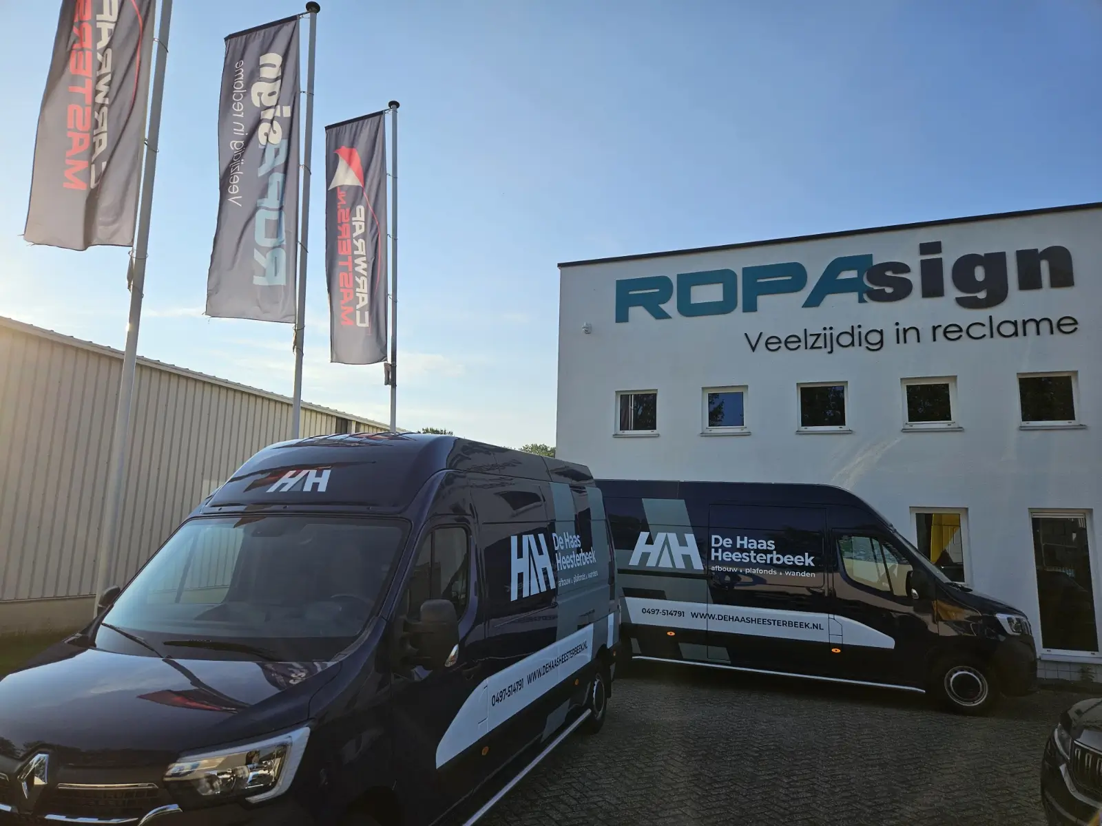 De bedrijfsbussen van De Haas en Heesterbeek hebben een gloednieuwe look dankzij de opvallende belettering die niet alleen de aandacht trekt, maar ook het merk versterkt.