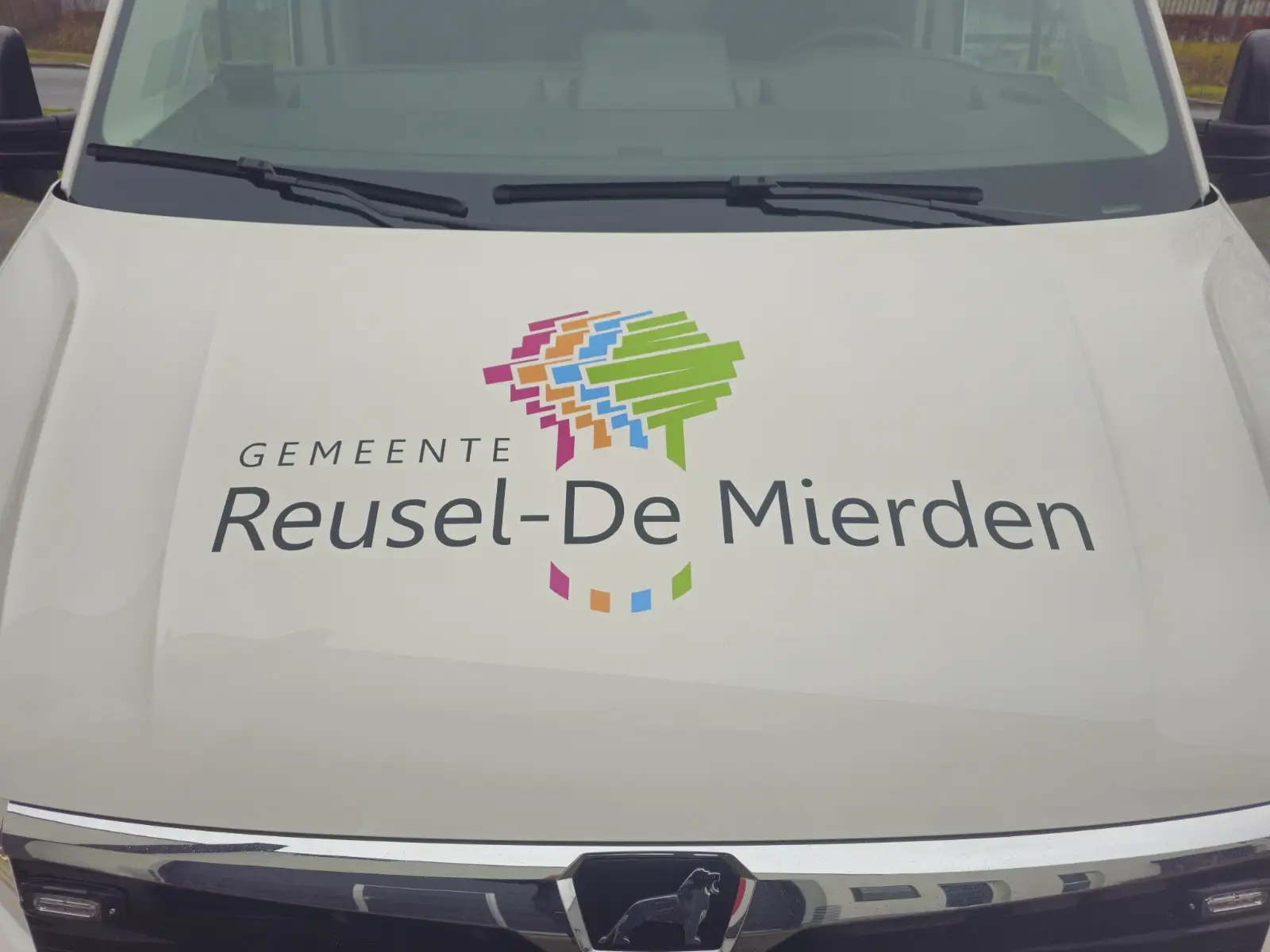 De bakwagen van de Gemeente Reusel-De Mierden heeft een gloednieuwe look dankzij de opvallende belettering die niet alleen de aandacht trekt, maar ook het merk versterkt.
