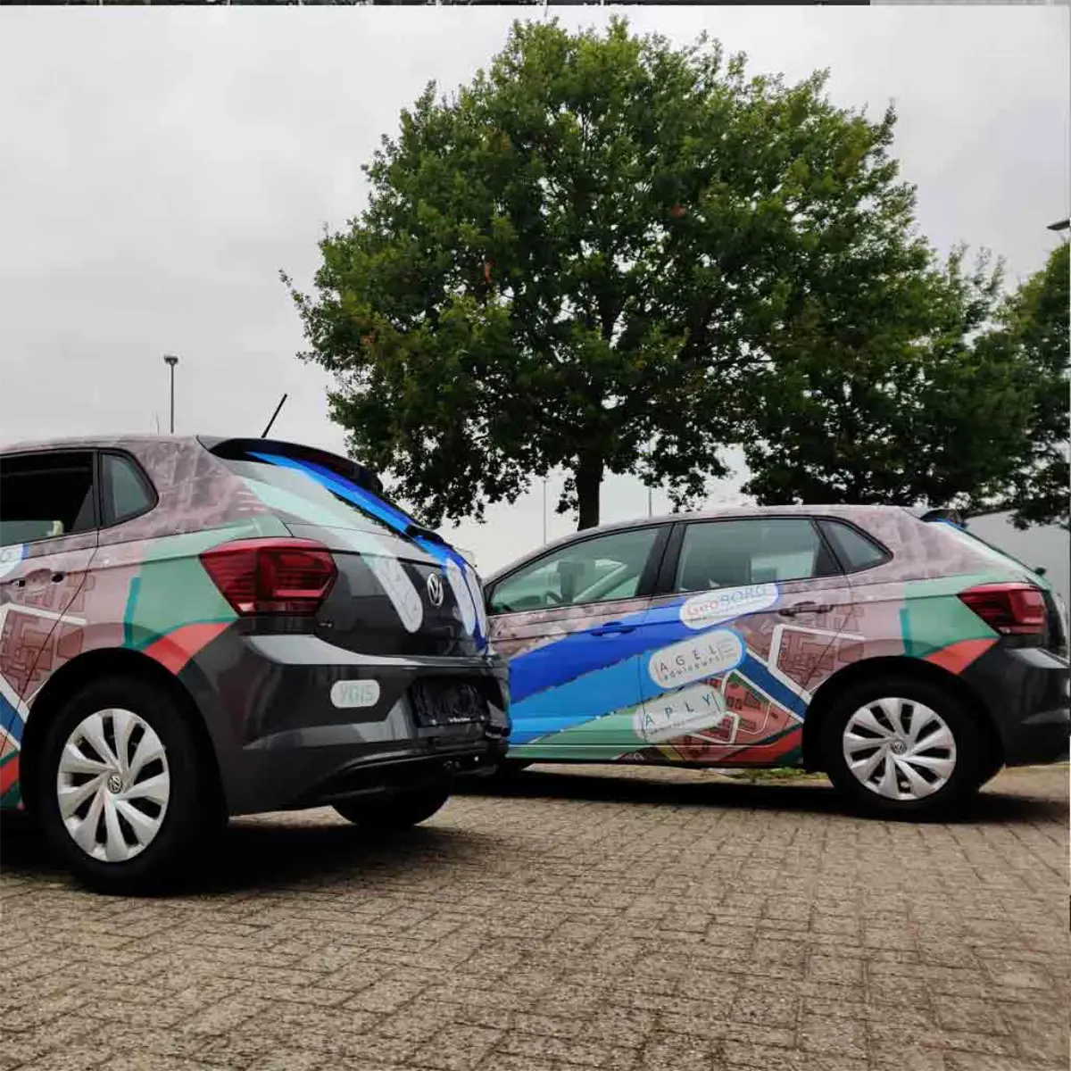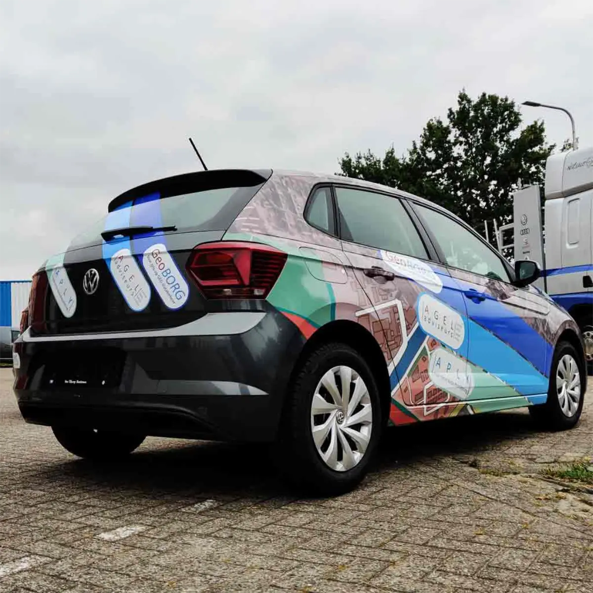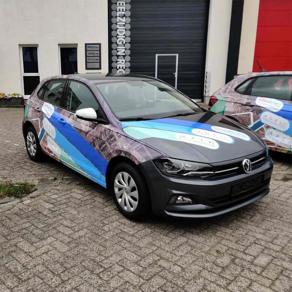 De VW Polo van Agel Adviseurs heeft een gloednieuwe look dankzij de nieuwe carwrap die niet alleen de aandacht trekt, maar ook het merk versterkt.