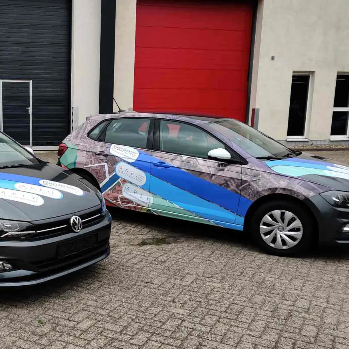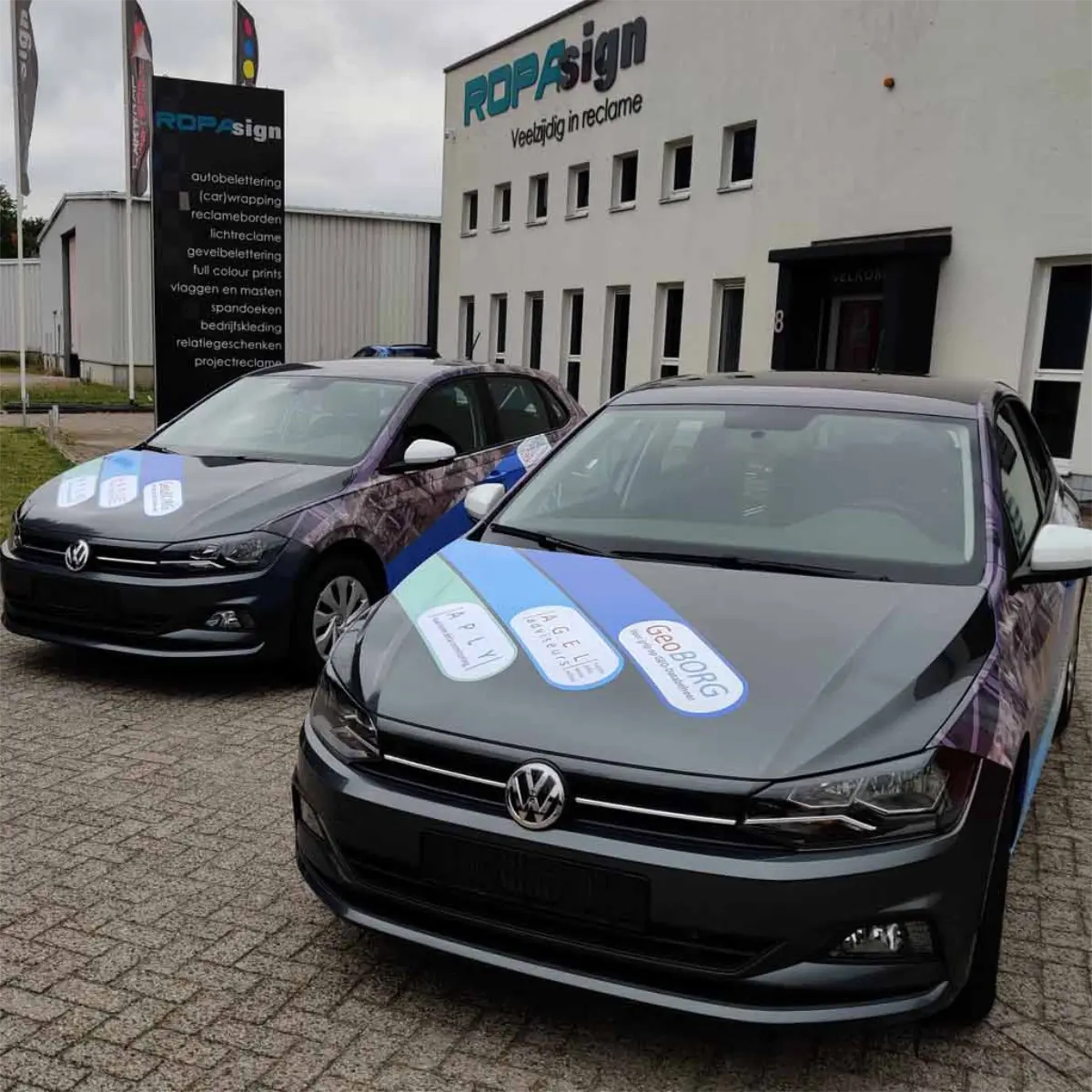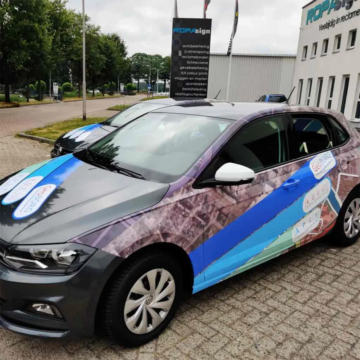De VW Polo van Agel Adviseurs heeft een gloednieuwe look dankzij de nieuwe carwrap die niet alleen de aandacht trekt, maar ook het merk versterkt.
