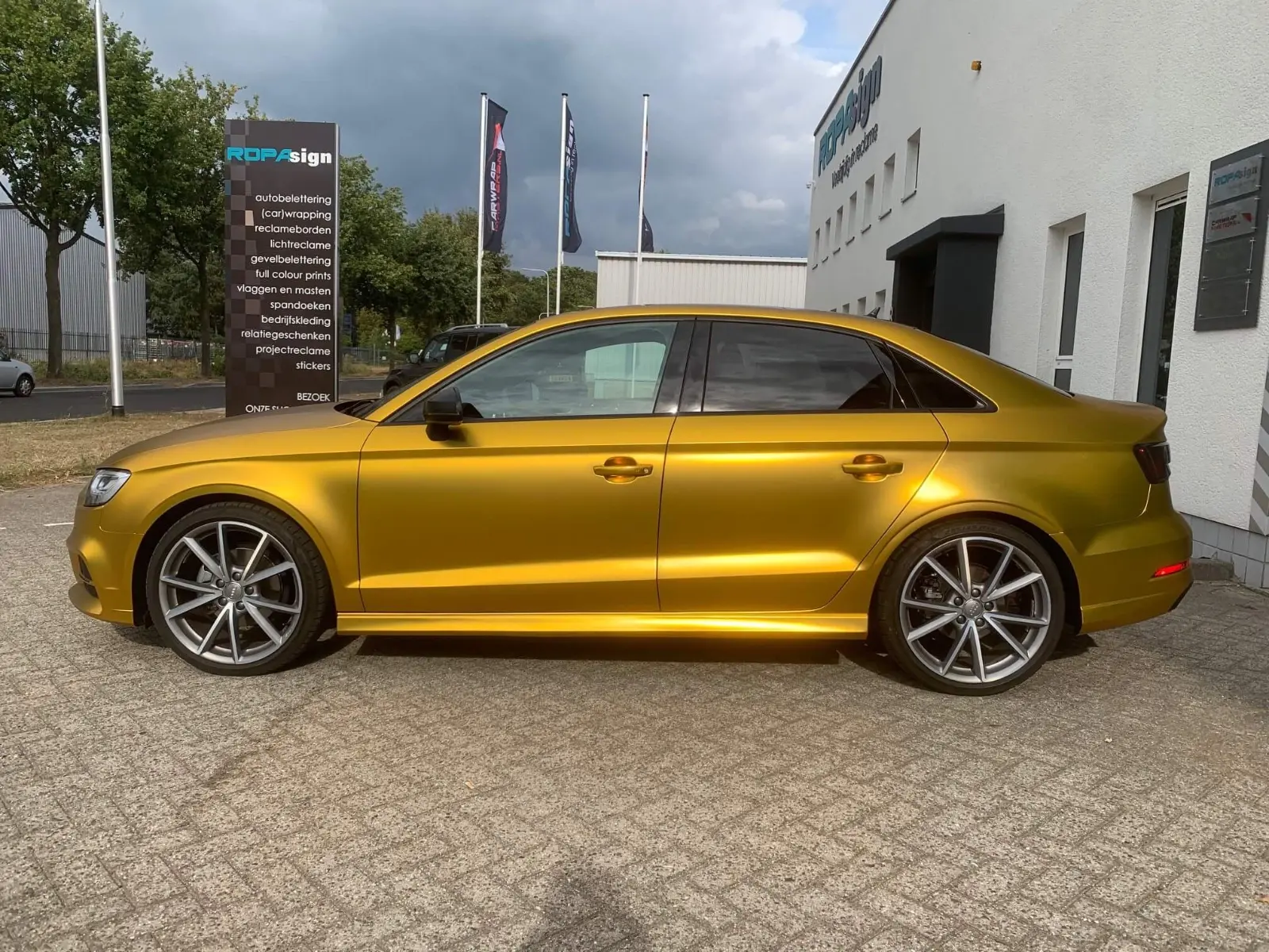 De Audi A3 heeft een gloednieuwe look dankzij de nieuwe carwrap die niet alleen de aandacht trekt, maar ook het merk versterkt.