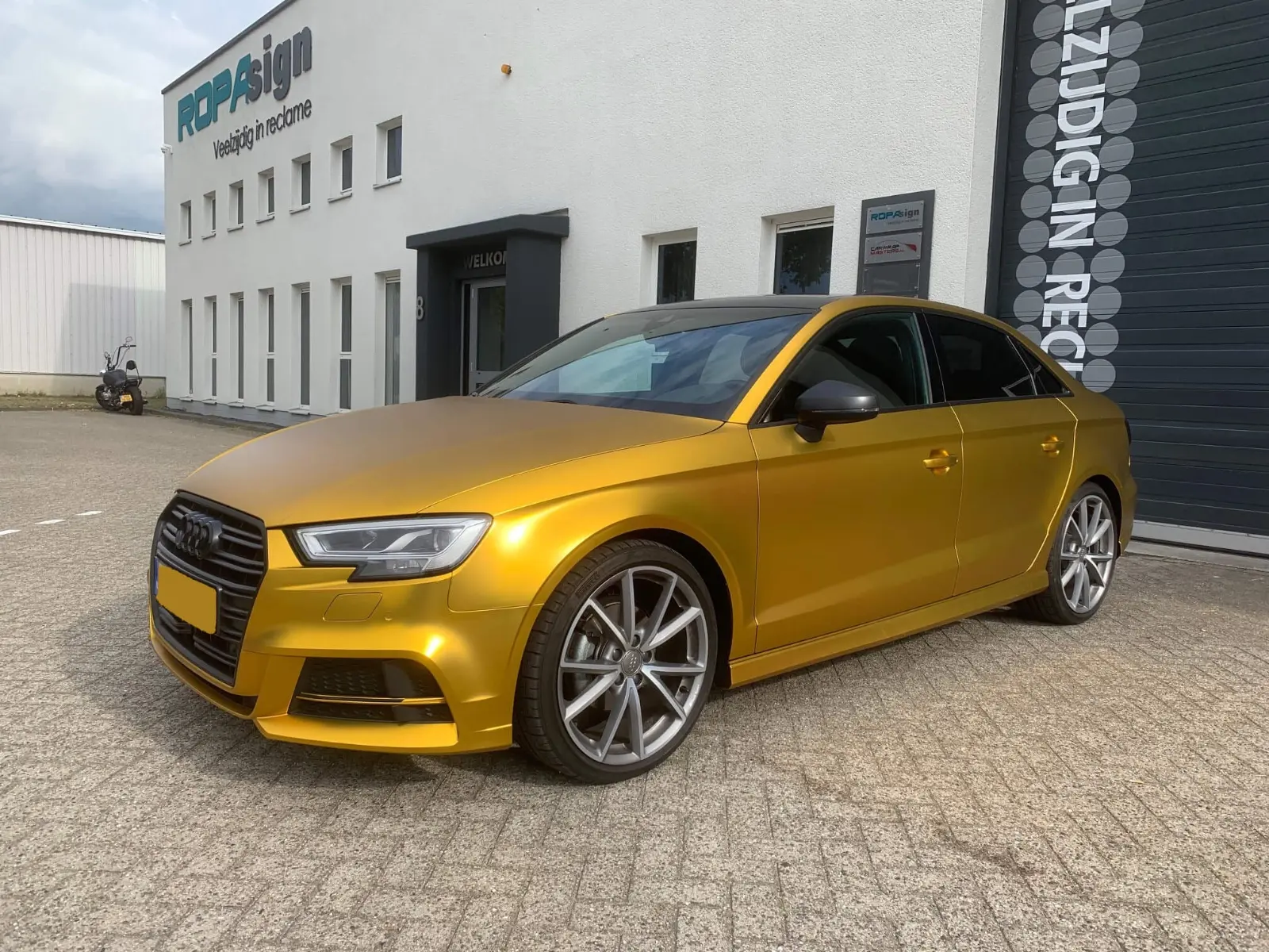 Home » Carwrapping » Audi A3 chrome satin gold carwrap