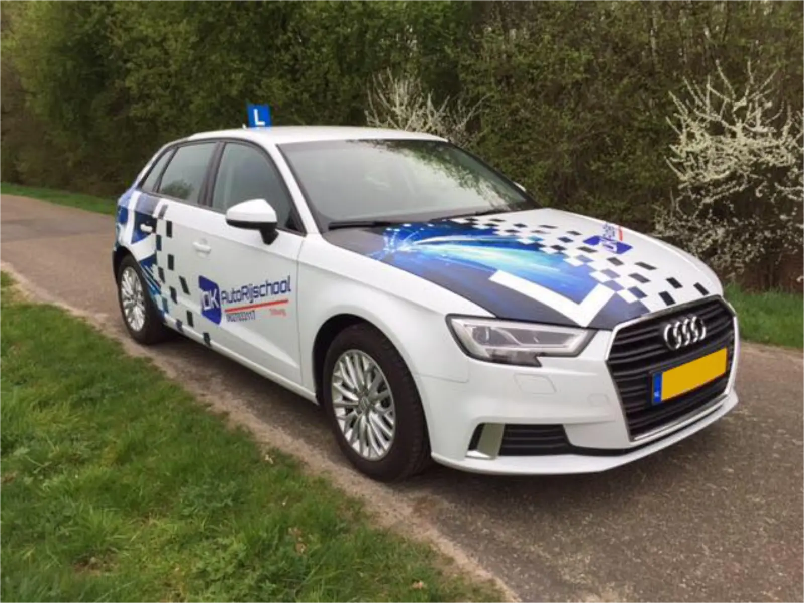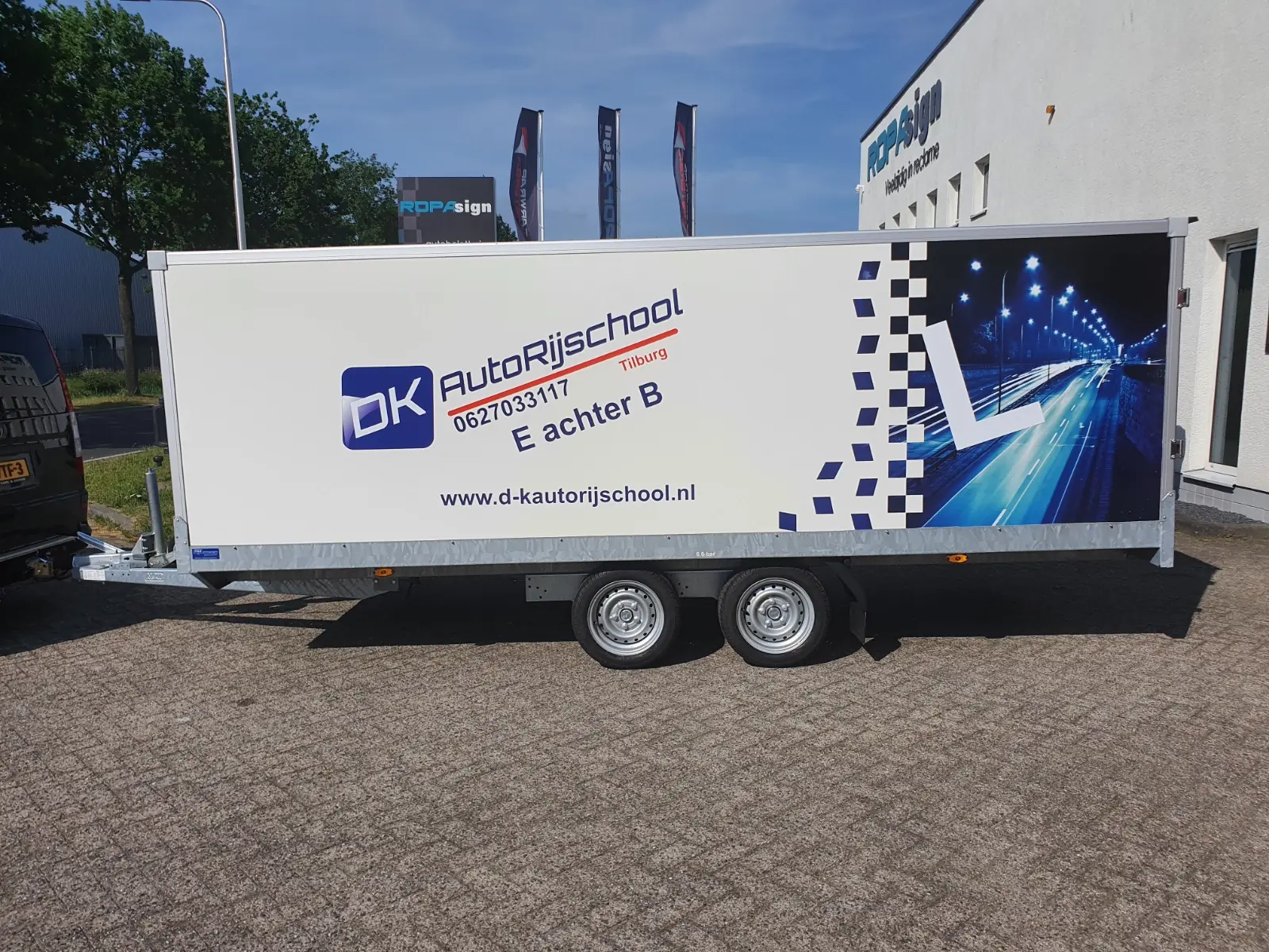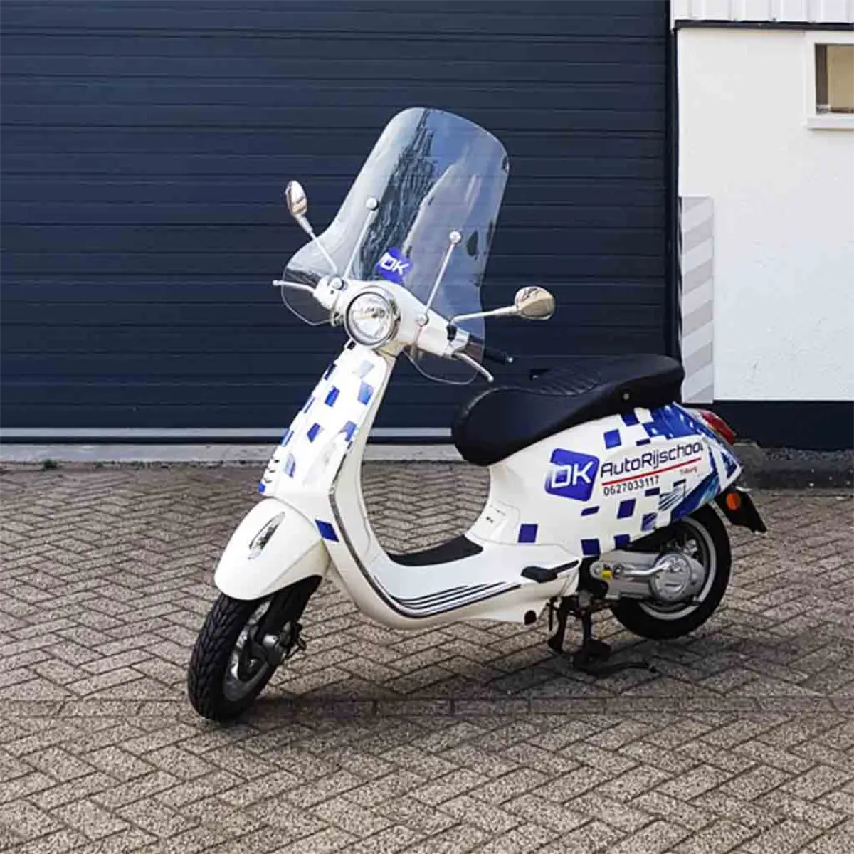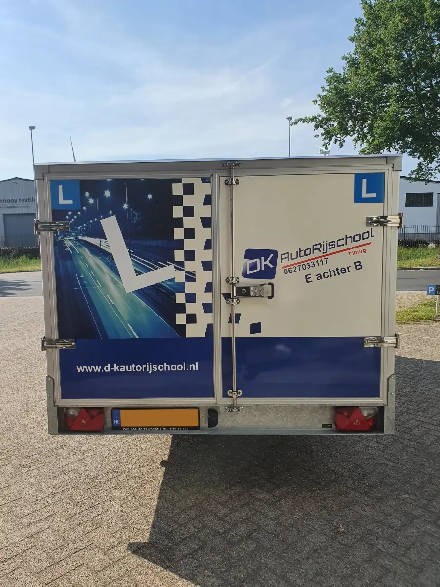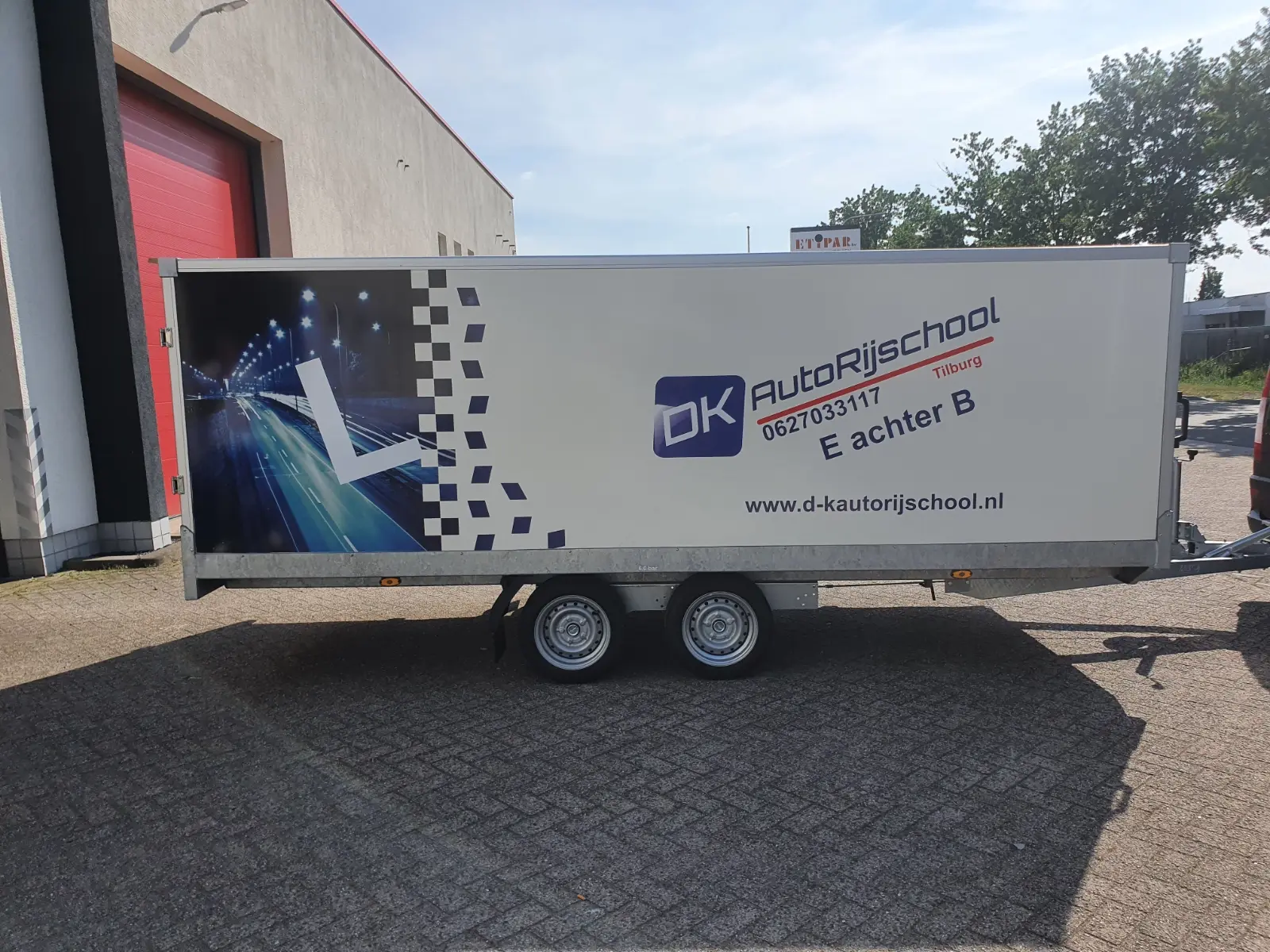 Het auto, aanhanger en scooter van DK Autorijschool hebben een gloednieuwe look dankzij de opvallende belettering die niet alleen de aandacht trekt, maar ook het merk versterkt.