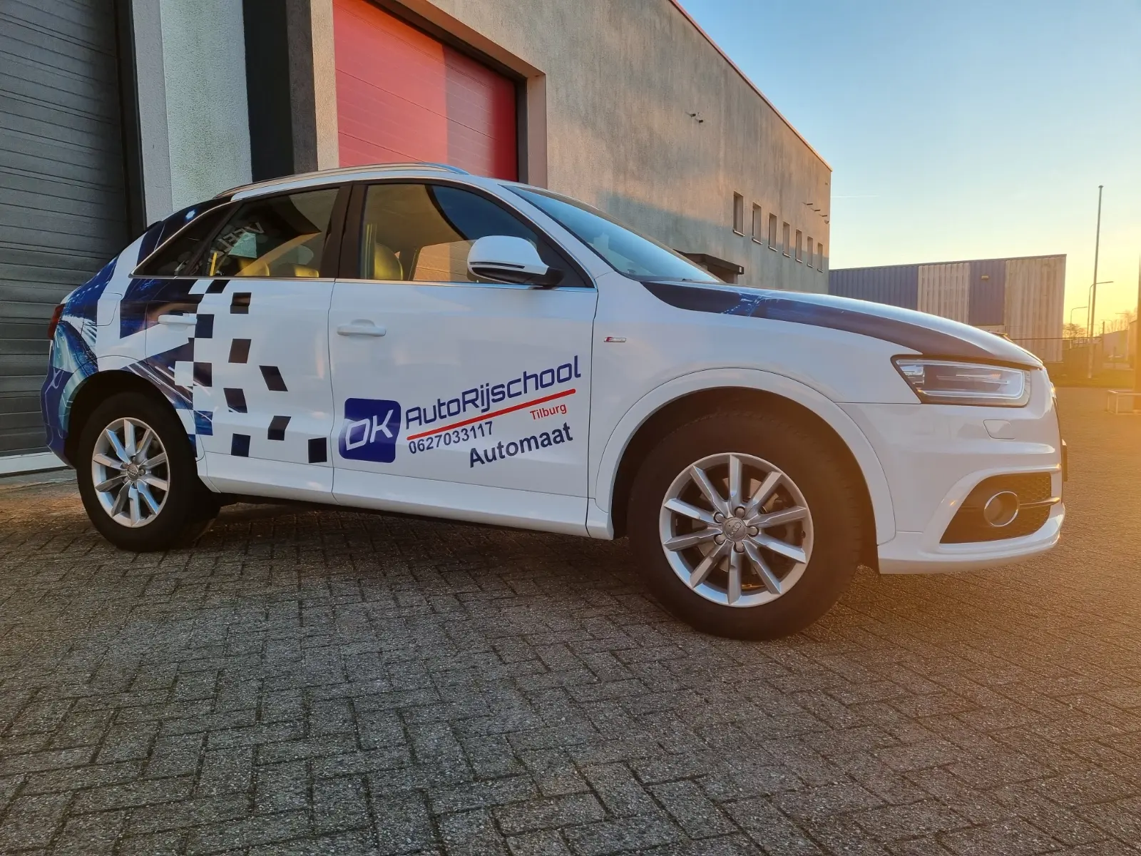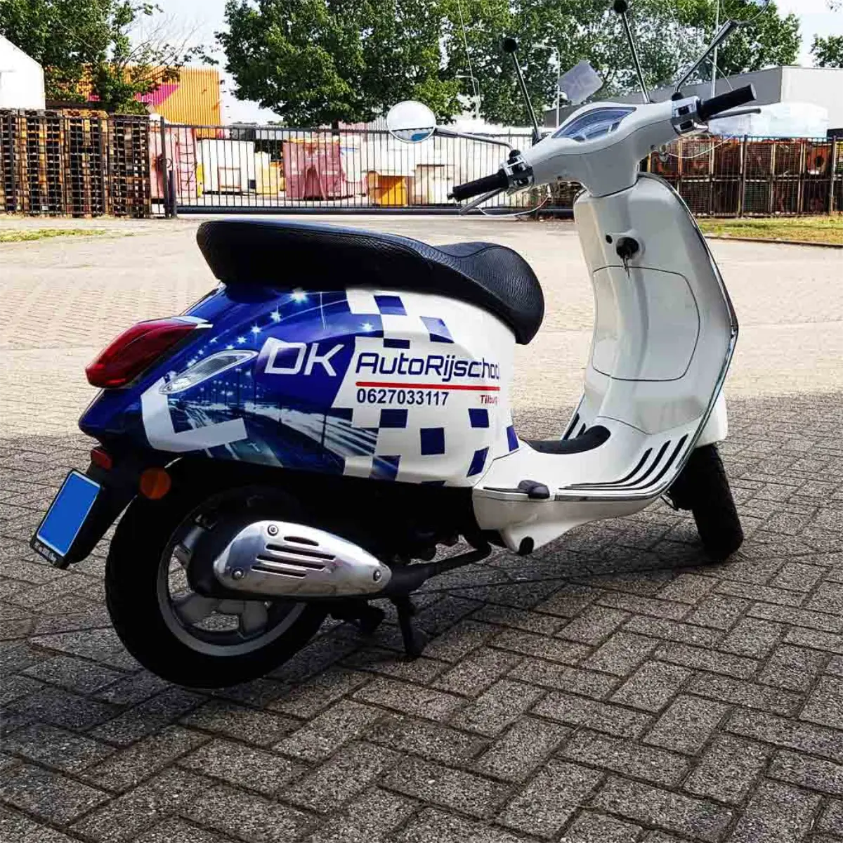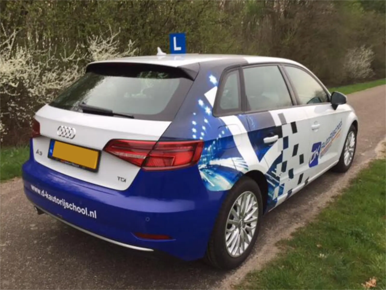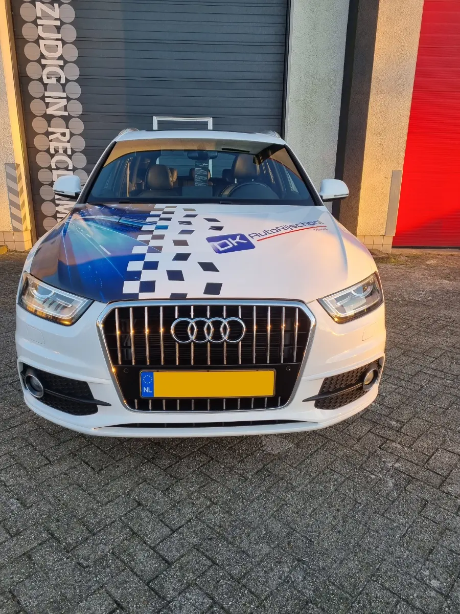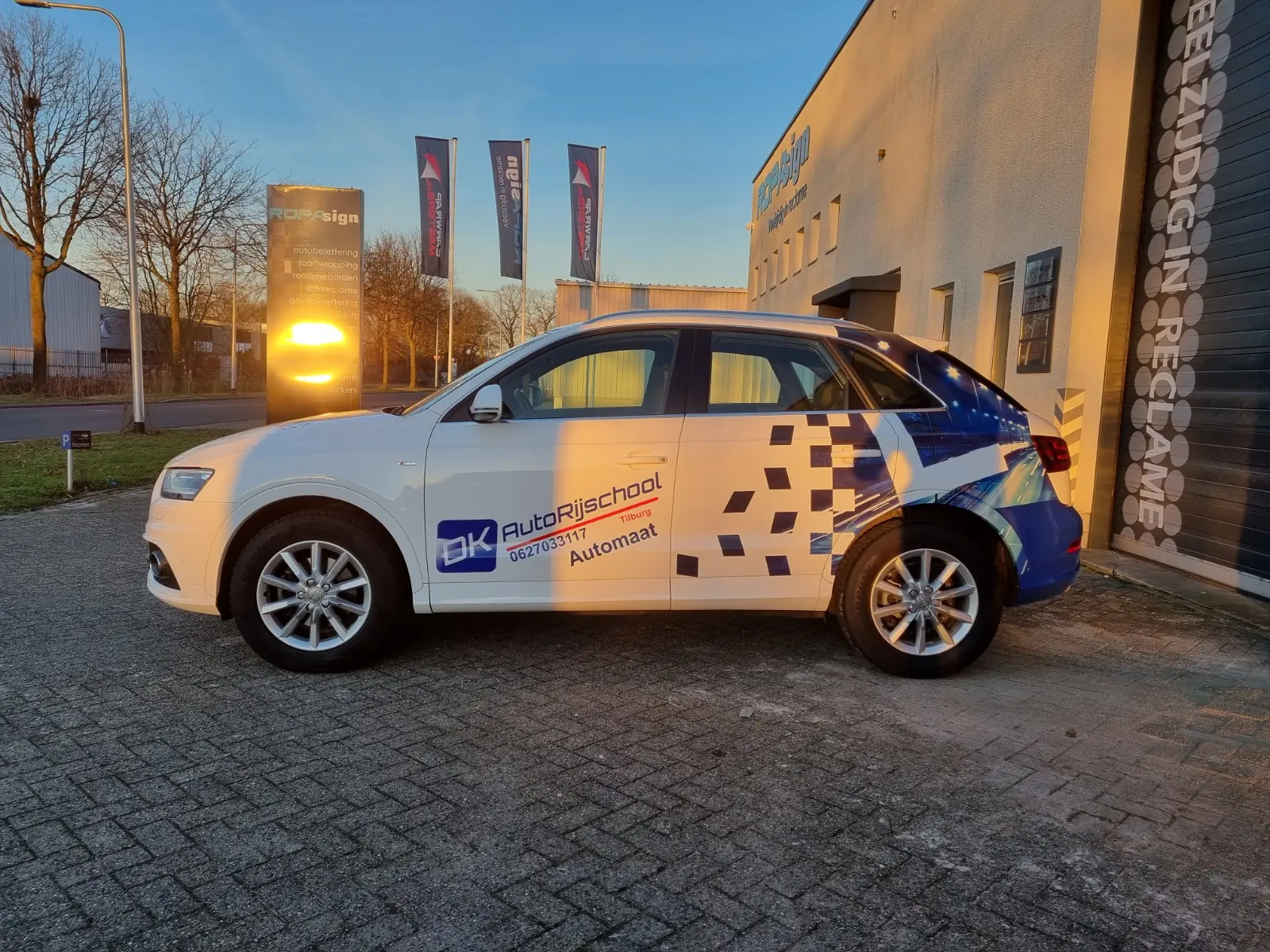 Het auto, aanhanger en scooter van DK Autorijschool hebben een gloednieuwe look dankzij de opvallende belettering die niet alleen de aandacht trekt, maar ook het merk versterkt.