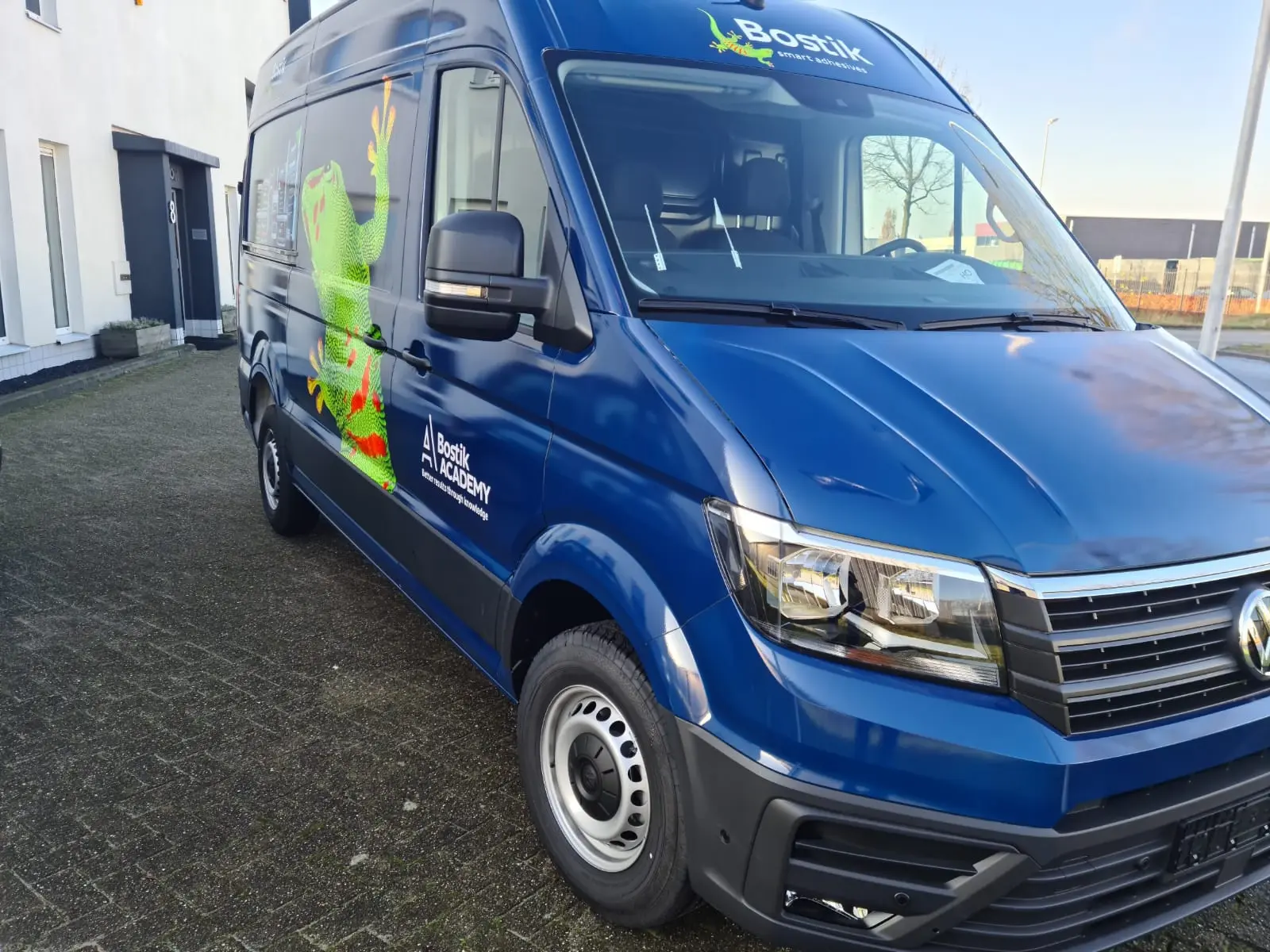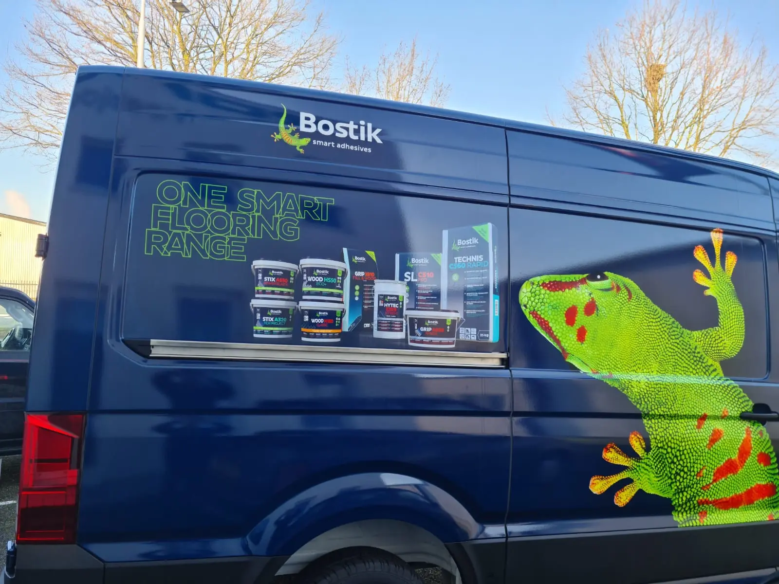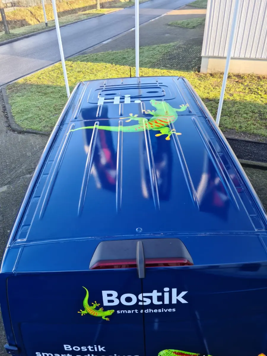 De nieuwe full colour print op de VW Crafter van Bostik trekken de aandacht, maar versterken ook het doel.