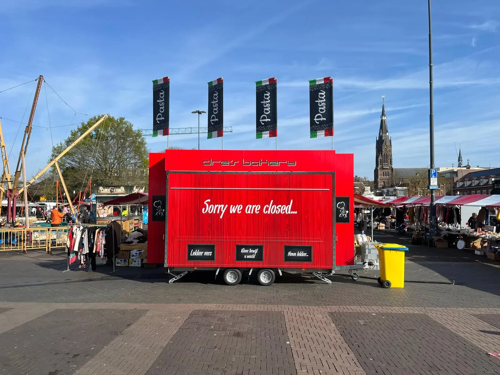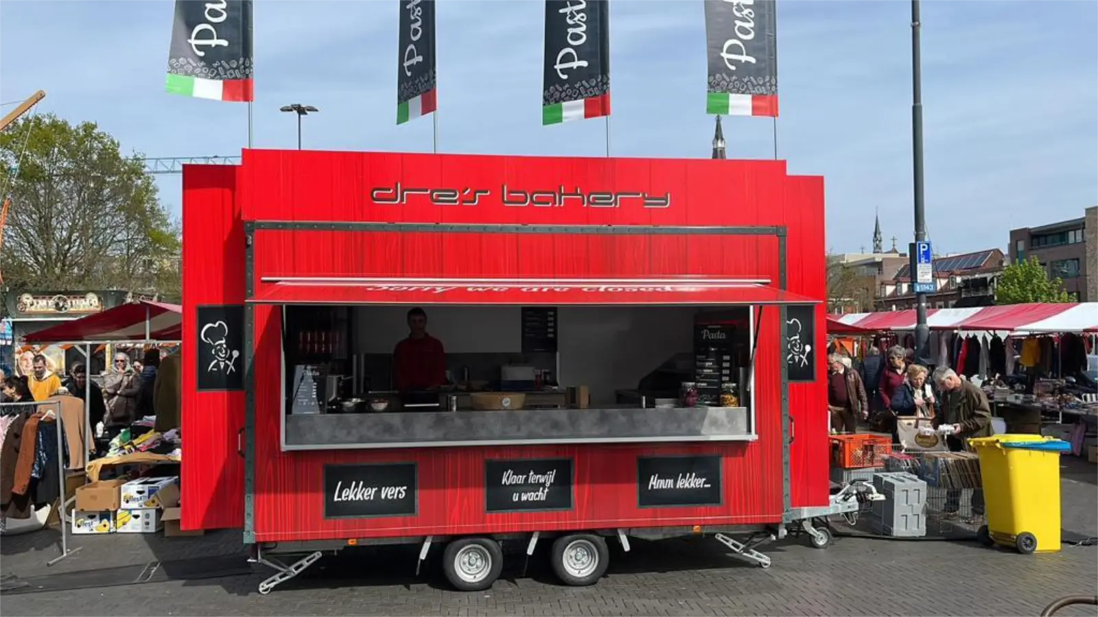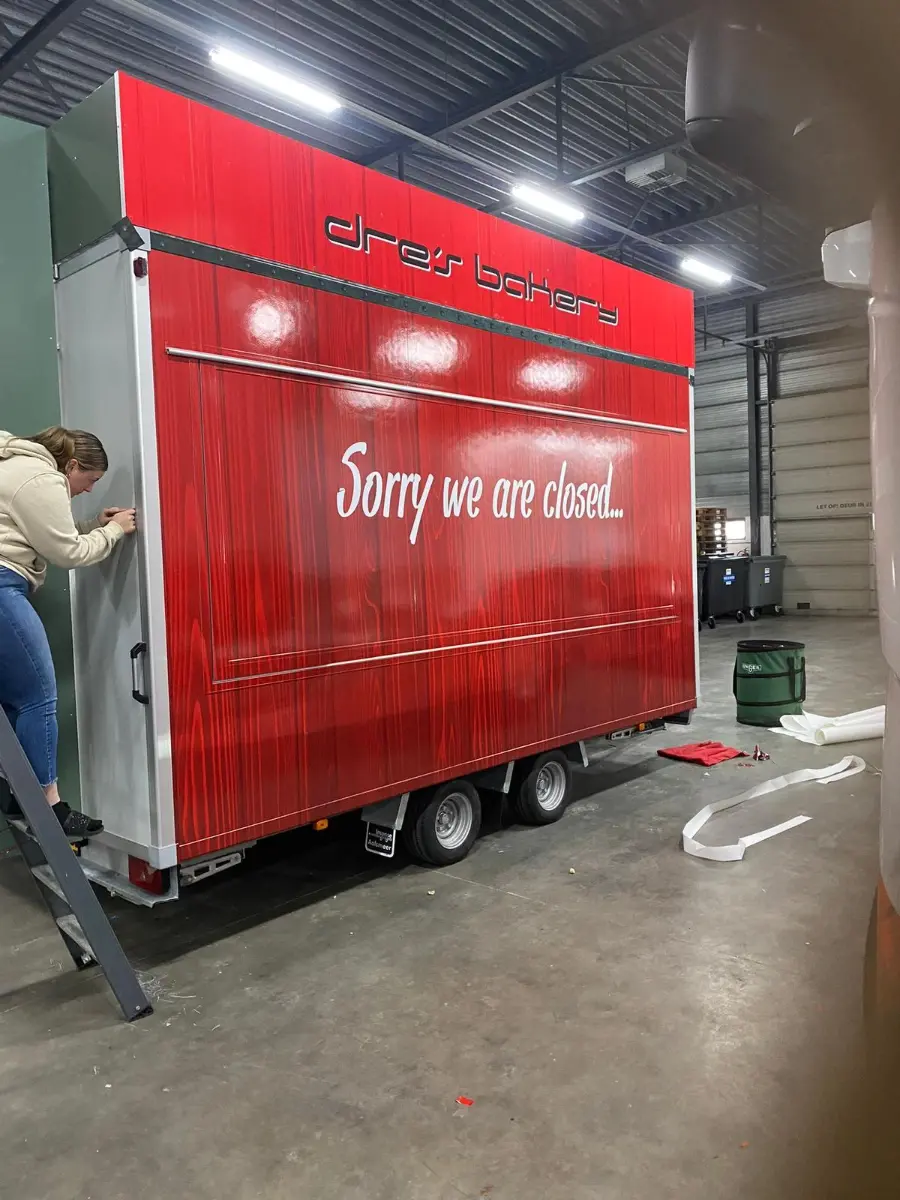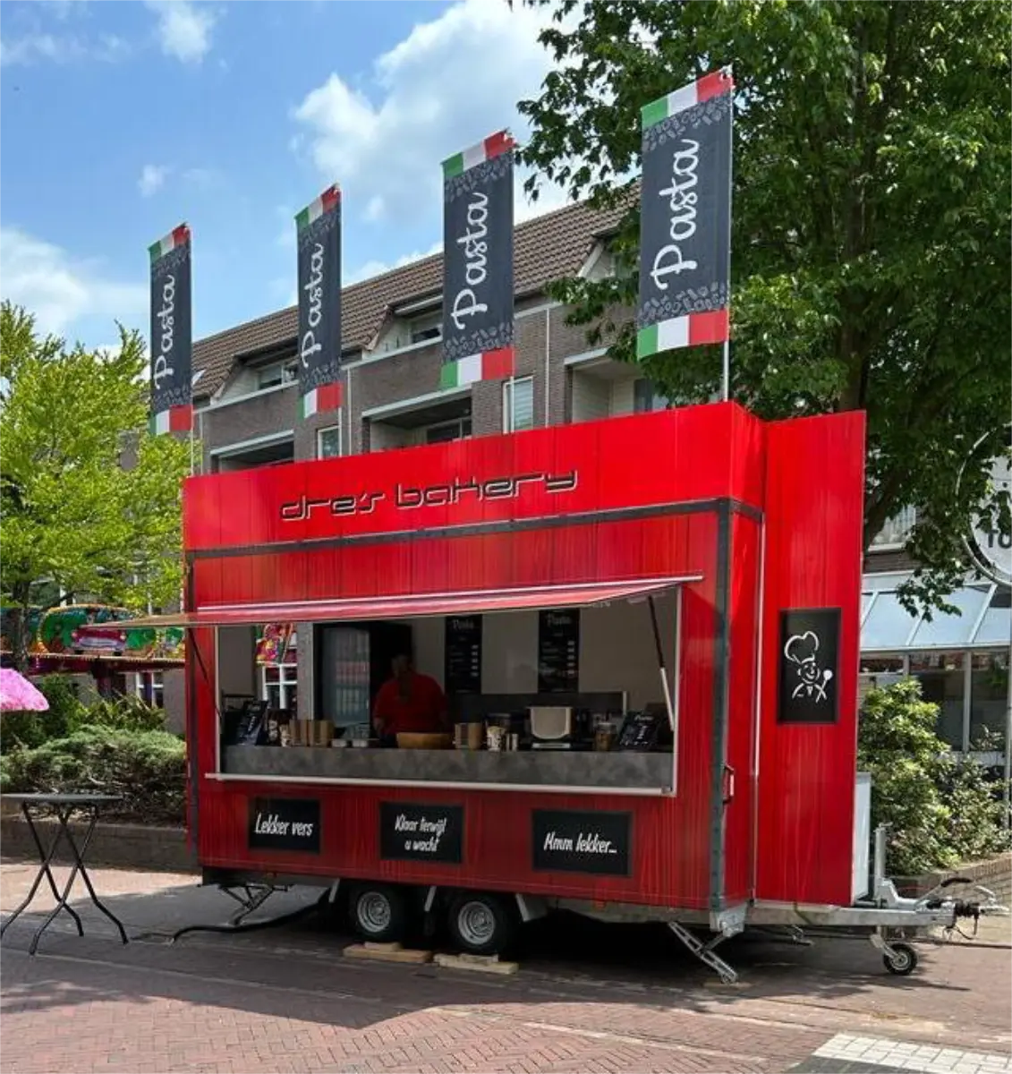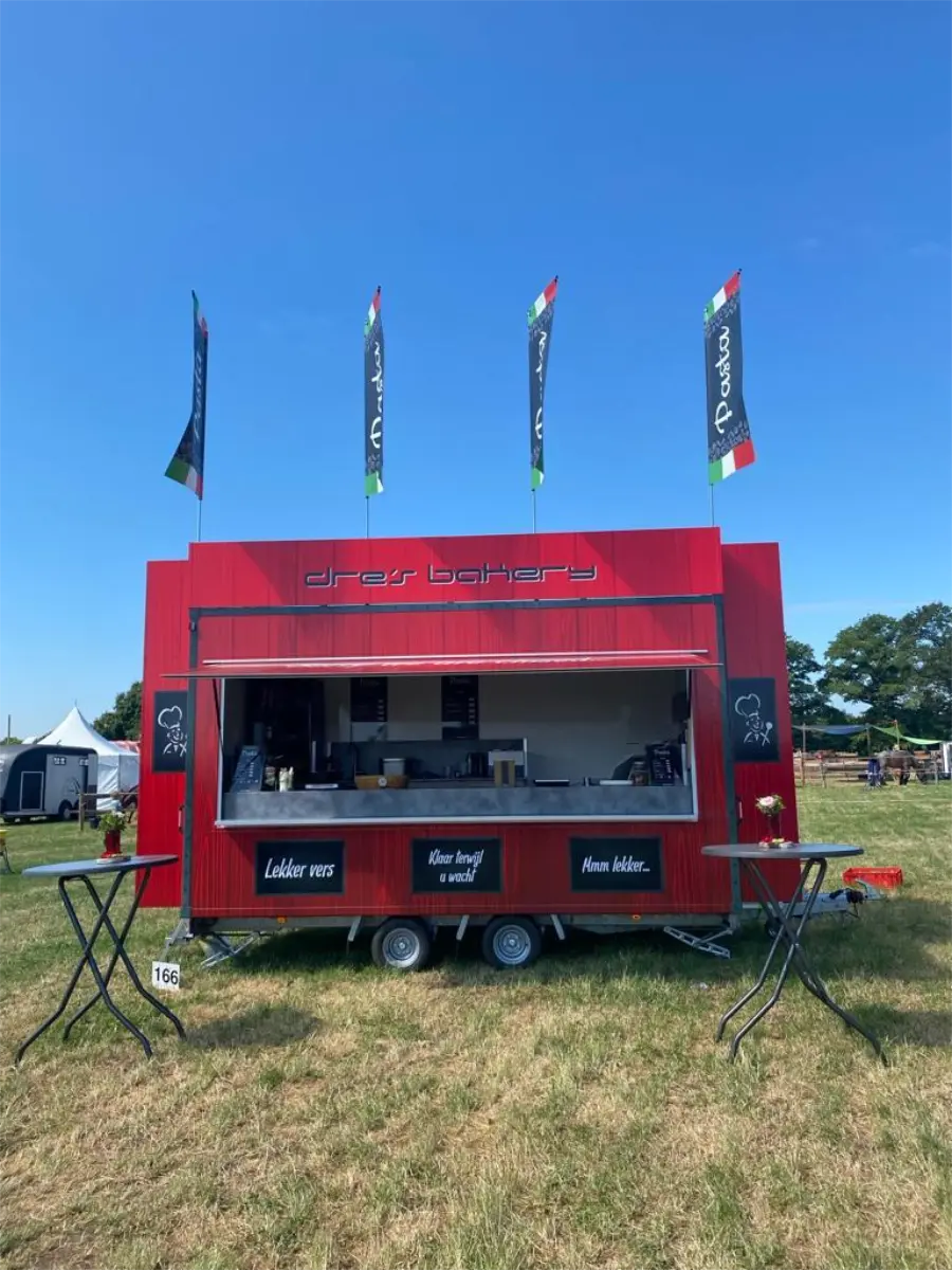 De nieuwe full colour print op de pasta kraam van Dre’s Bakery trekken de aandacht, maar versterken ook het doel.
