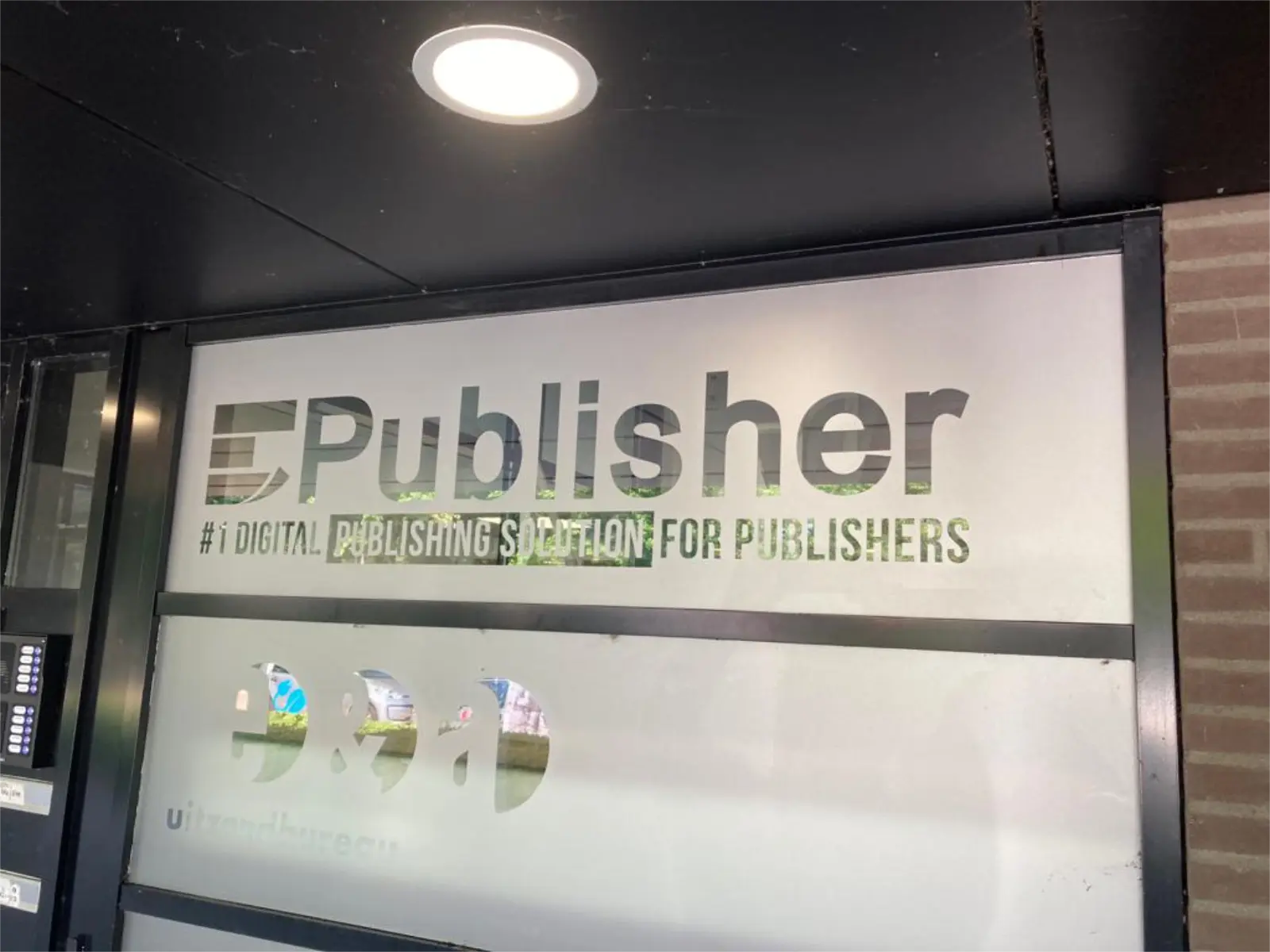 De ramen met etch folie voor E Publisher trekt de aandacht, maar versterkt ook het doel.