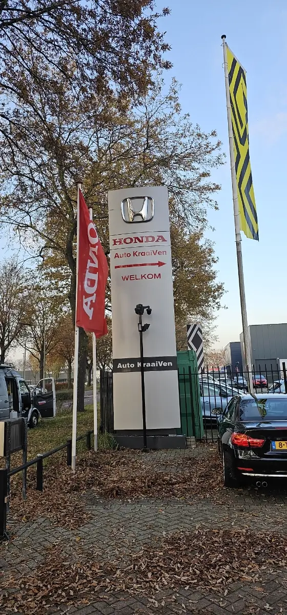 De nieuwe reclamezuil van Auto Kraaiven Tilburg B.V. is functioneel, trekt de aandacht en versterkt ook het merk.
