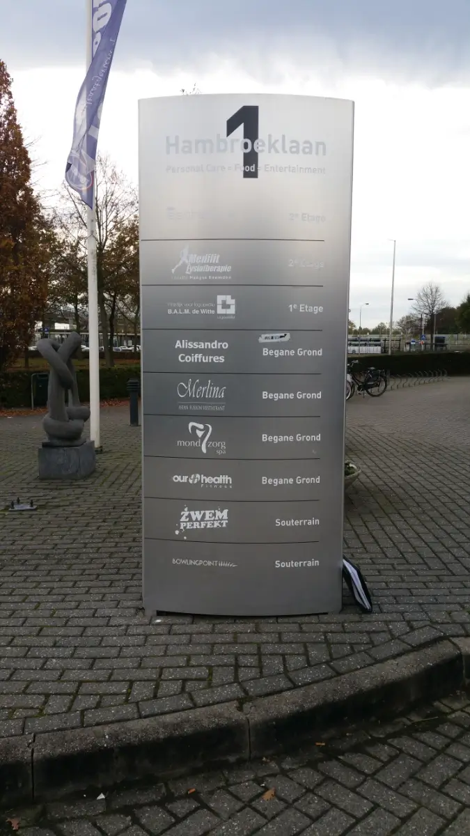 De nieuwe reclamezuil voor een bedrijvencomplex aan de Hambroeklaan is functioneel, trekt de aandacht en versterkt ook het merk.