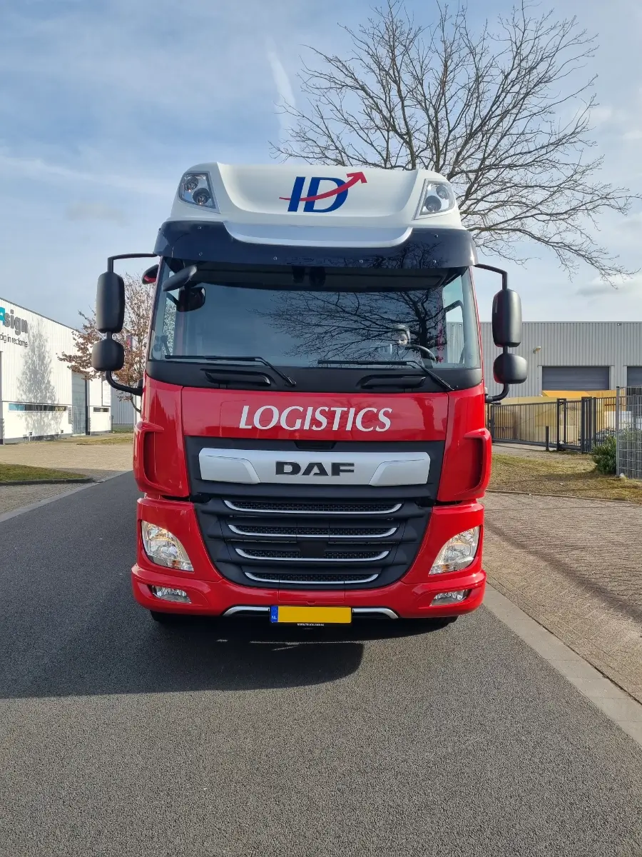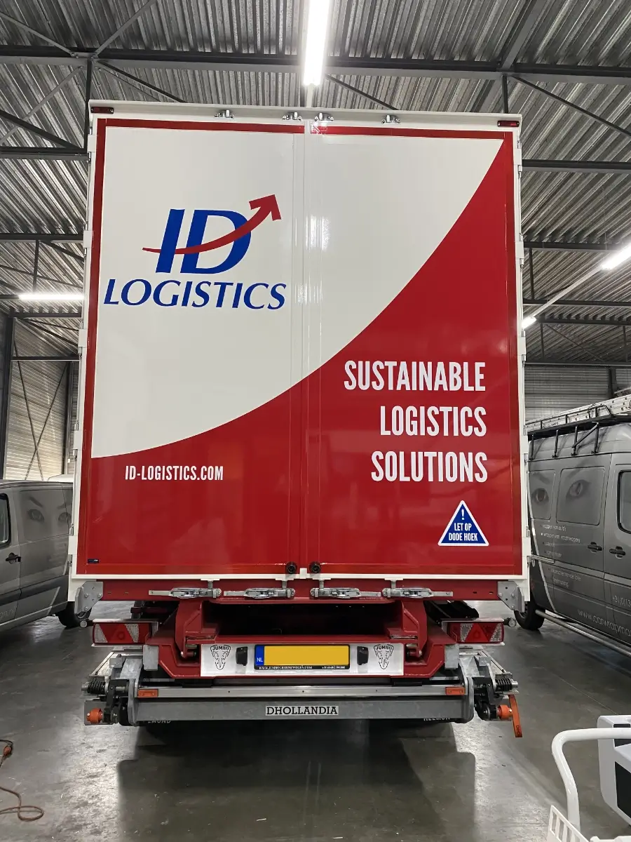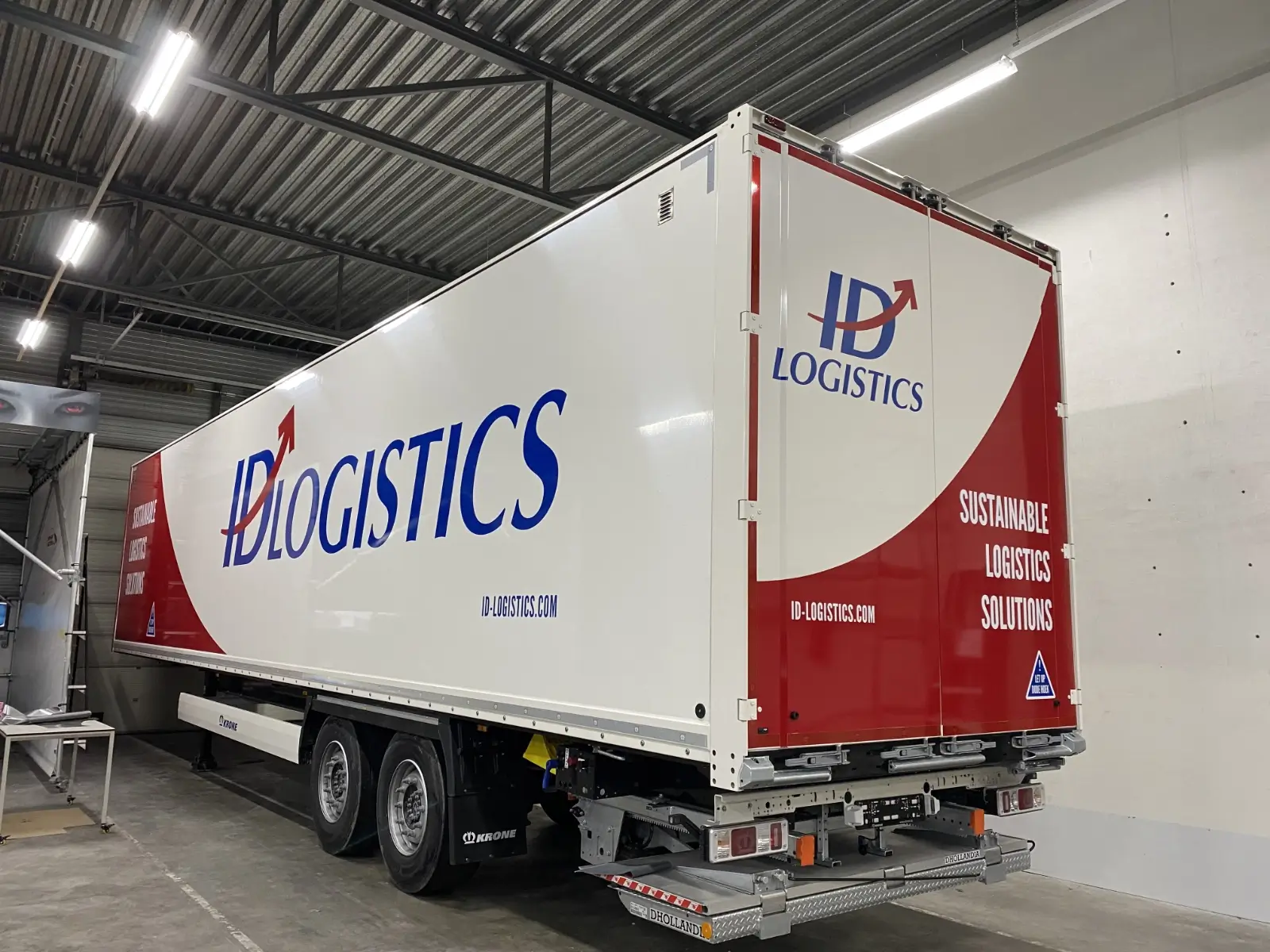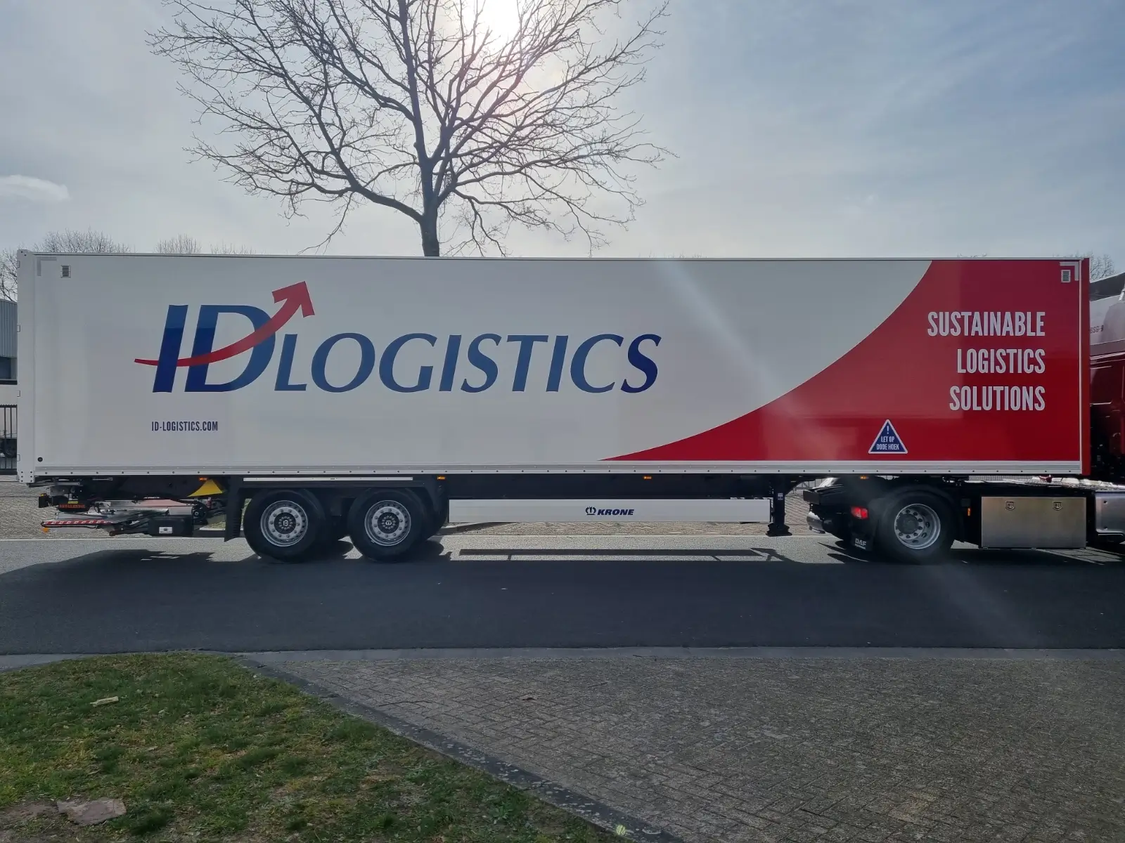 De 13.60 meter lange oplegger van ID Logistics heeft een gloednieuwe look dankzij de nieuwe belettering die niet alleen de aandacht trekt, maar ook het merk versterkt.